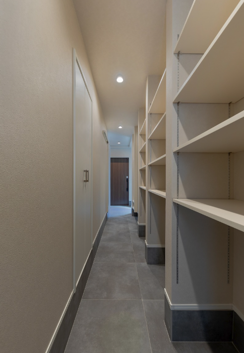 こちらの住宅は、玄関を入ってすぐに土間収納を豊富に配置しています。アウトドア用品を収納したり、子どもの遊び道具を収納したりなど、使い勝手がよい土間収納です。